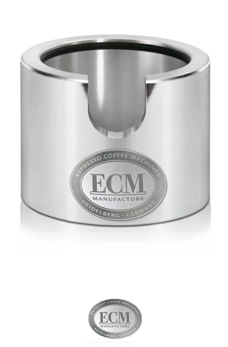 The Adjustable tamping station is made of polished stainless steel and fits perfectly to the series of ECM stainless steel portafilters.