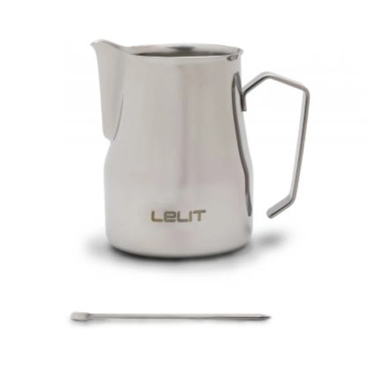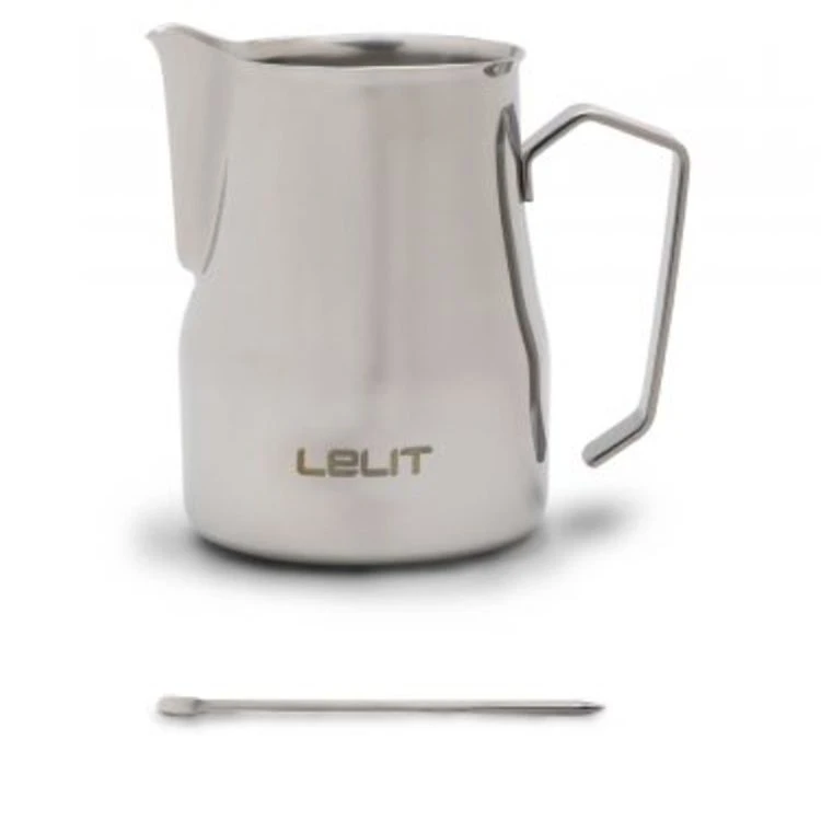 Lelit Branded stainless steel milk jug complete of a latte art pen.Ā Available in 35cl, 50cl and 75cl.