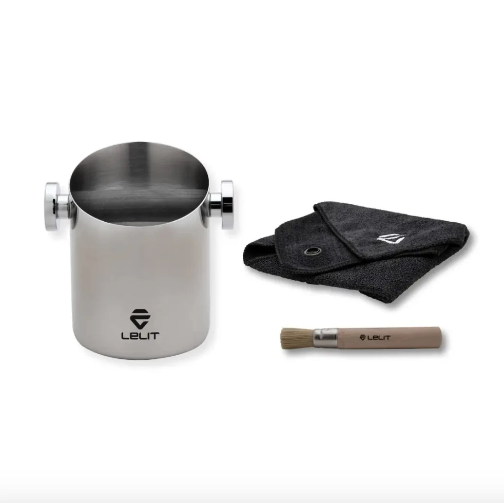 Lelit Knock box drawer – , brushed stainless steel with holes to prevent condensation.ย The inner drawer is dishwasher safe and the solid knocking rod is covered with rubber.ย Stain-resistant and anti slip rubber feet.ย Equipped with a magnetic external storage compartment.ย Maximum capacity of 70 coffee grounds of 14g each.ย It includes a microfibre cloth and wooden brush with natural bristles.ย It can be used as a base for grinders.