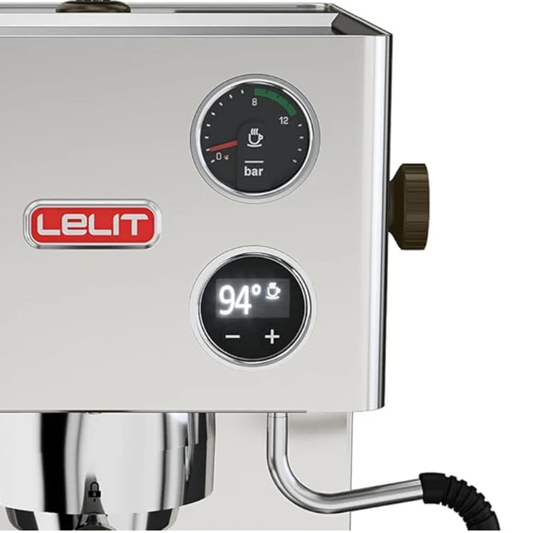 TECHNICAL FEATURES: LELIT58 commercial group compatible with LELIT58 barista tools 3 ways solenoid valve to dry up the coffee puck LCC with high-resolution OLED graphic display Graphic indicator for lack of water in the tank Display for coffee, steam and hot water temperature and extraction time countdown Possibility to activate the preinfusion, the stand-by and the washing cycle Back-lit manometer for coffee pressure Brushed stainless steel appliance body with drip tray and wire grate Wide cup warmer Back-lit stainless steel buttons Steam/hot water multidirectional wand Mug friendly