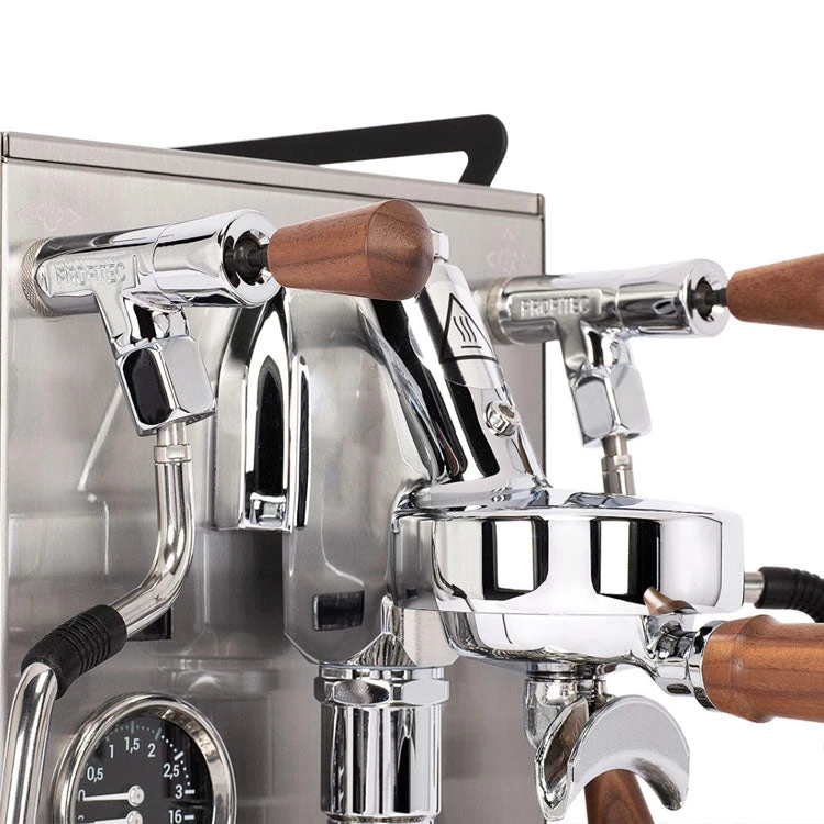 The JUMP is a compact and powerful heat exchanger machine that has a small footprint.Ā A convenient switch located underneath the machine allows for easy selection of three preset temperatures, as well as activation or deactivation of the preinfusion and ECO mode. The discreet display not only lets you monitor the selected settings but also shows the duration of the espresso extraction (shot counter) and alerts you when the water tank is empty.