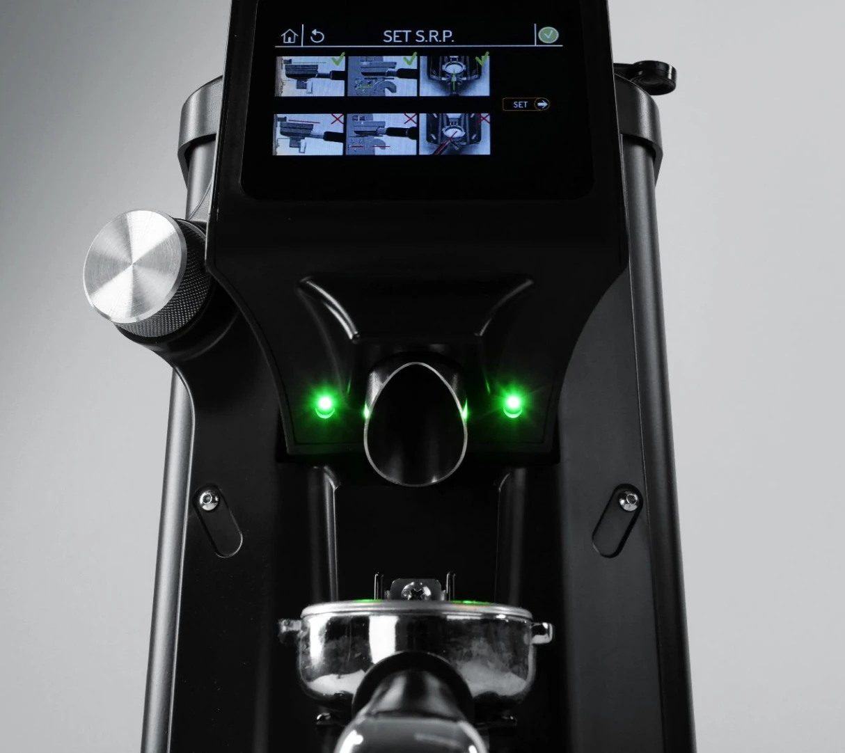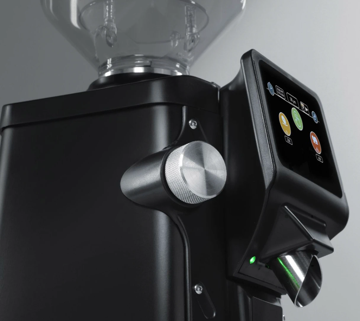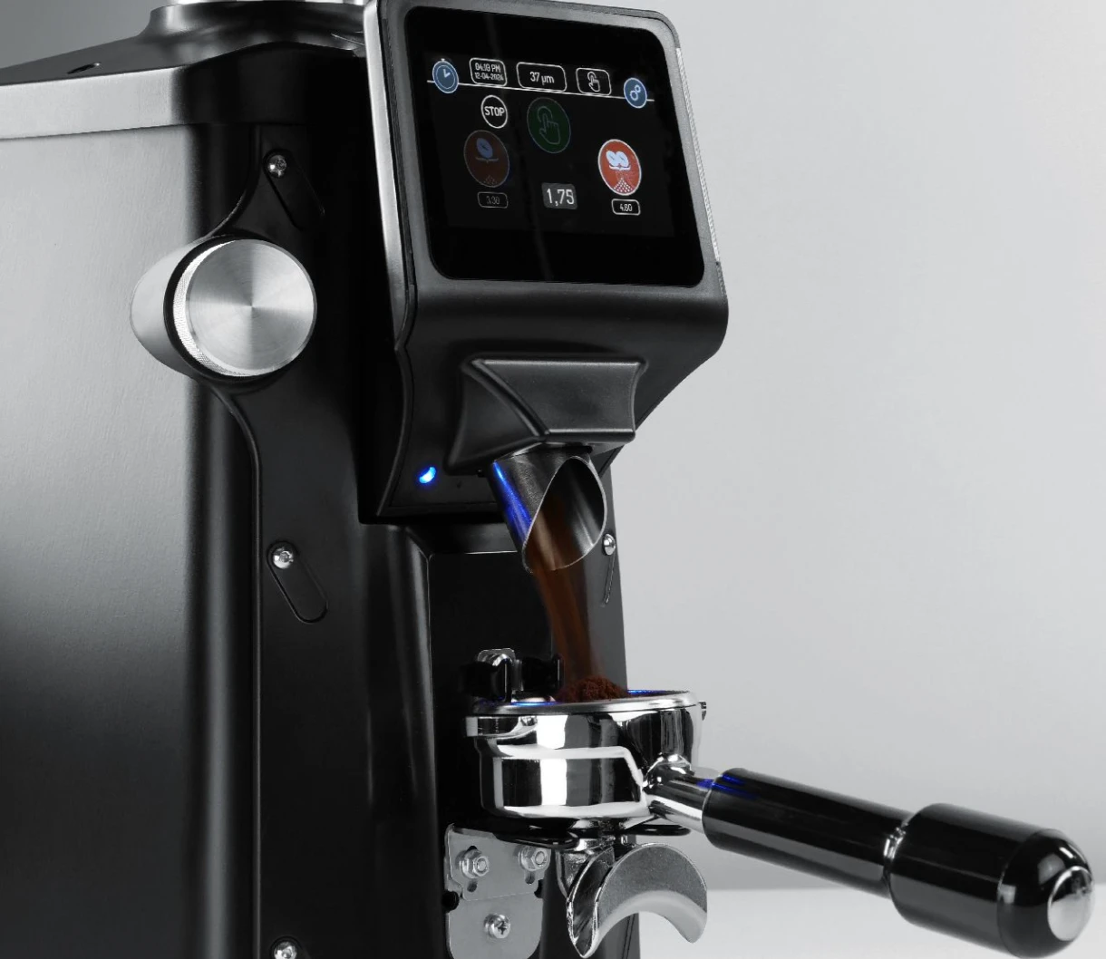Grinding Adjustment System – Continuous micrometric adjustment with a front alluminum knob and digital micron indicator on the display, ensuring uniform, precise grinding and real-time monitoring, with the ability to easily switch between different settings for any extraction method.